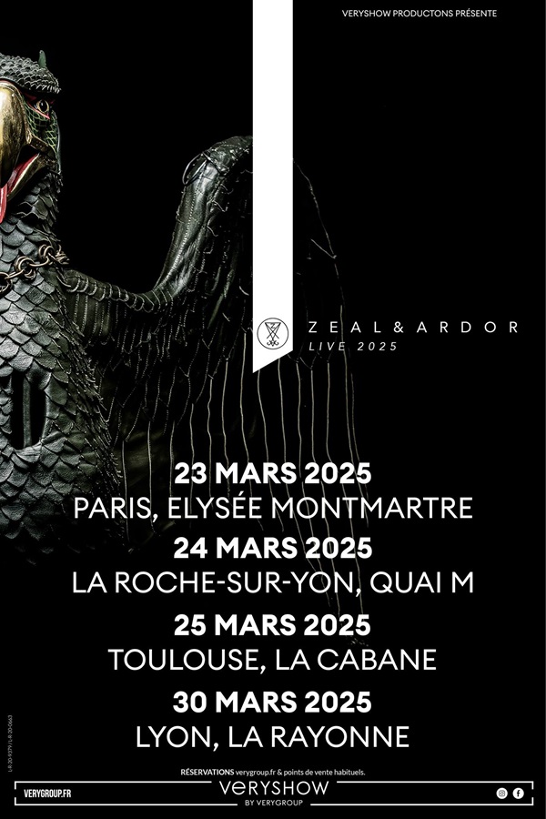 Après avoir fait sensation à Paris il y a quelques jours, le sextet suisse de rock alternatif/avant-gardiste ZEAL & ARDOR annonce une nouvelle série de concerts en France en 2025 :