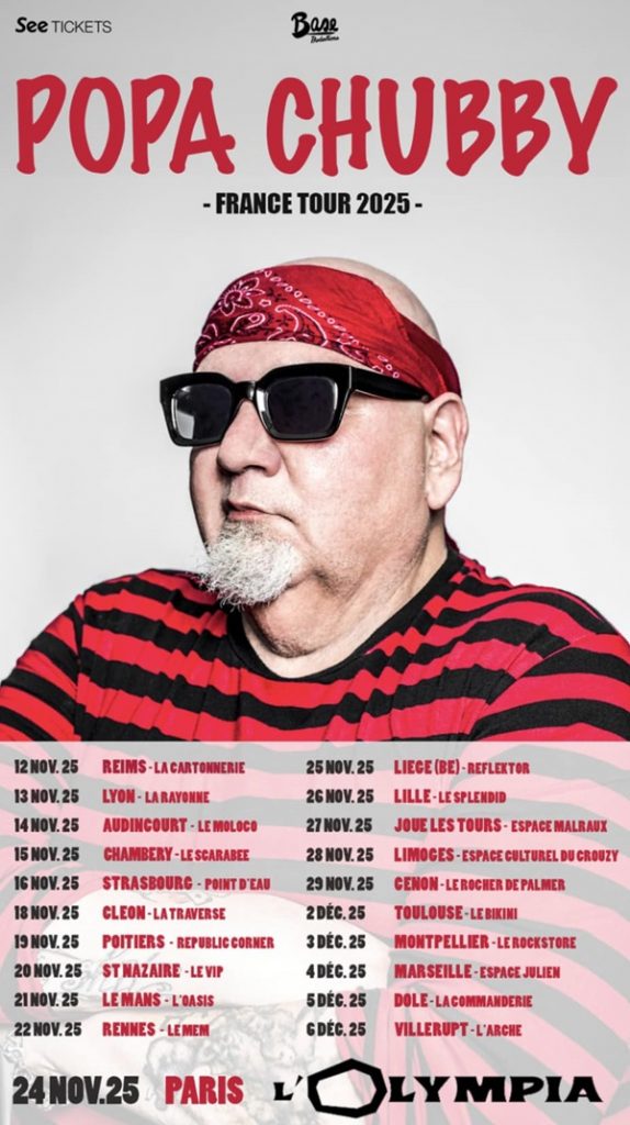 Après des problèmes de santé qui l’ont immobilisé quelques mois, le très talentueux guitariste de blues new yorkais Popa Chubby a repris récemment le chemin de la scène. Il sera en France pour une série de 20 concerts en novembre et décembre 2025.