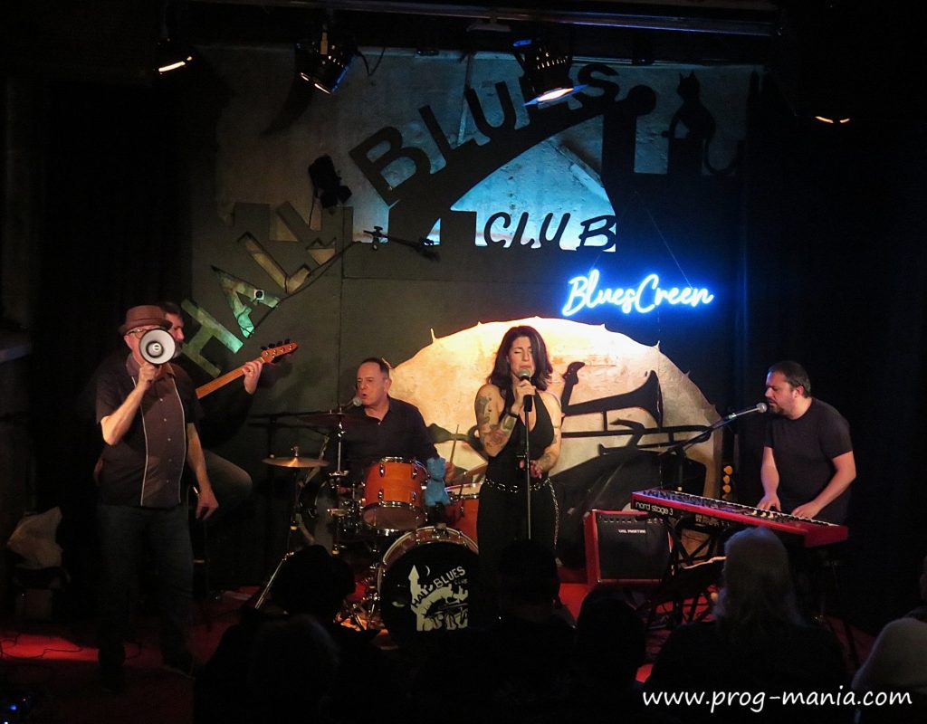 La performance de cette formation de 5 musiciens, emmenée par la pétillante et très technique chanteuse Federica Gerotto a été remarquable, interprétant de façon magistrale une série de titres blues de différents horizons avec un groove, un feeling et une présence scénique qu’il faut souligner !…
