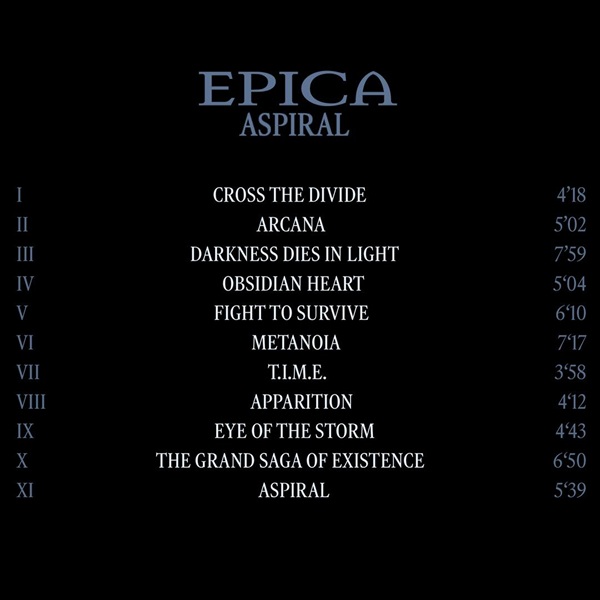 Le titre de l’album, Aspiral, est dérivé de la sculpture en bronze réalisée par le sculpteur et peintre polonais Stanisław Szukalski en 1965 et représente le renouveau et l’inspiration – des mots-clés qui définissent EPICA en 2025. Dans le travail de Szukalski, chaque détail est une œuvre d’art à part entière, et l’histoire est toujours plus riche qu’on ne le pense au départ. Le groupe a vu cela comme l’analogie parfaite pour la création de ce 9e album : chaque chanson est autonome avec une ambiance et une signification distinctes, tandis qu’ensemble, elles se renforcent mutuellement dans un effort monumental.