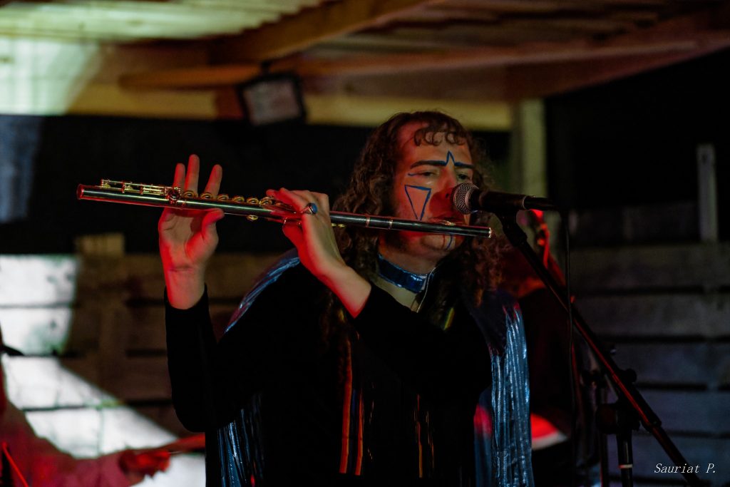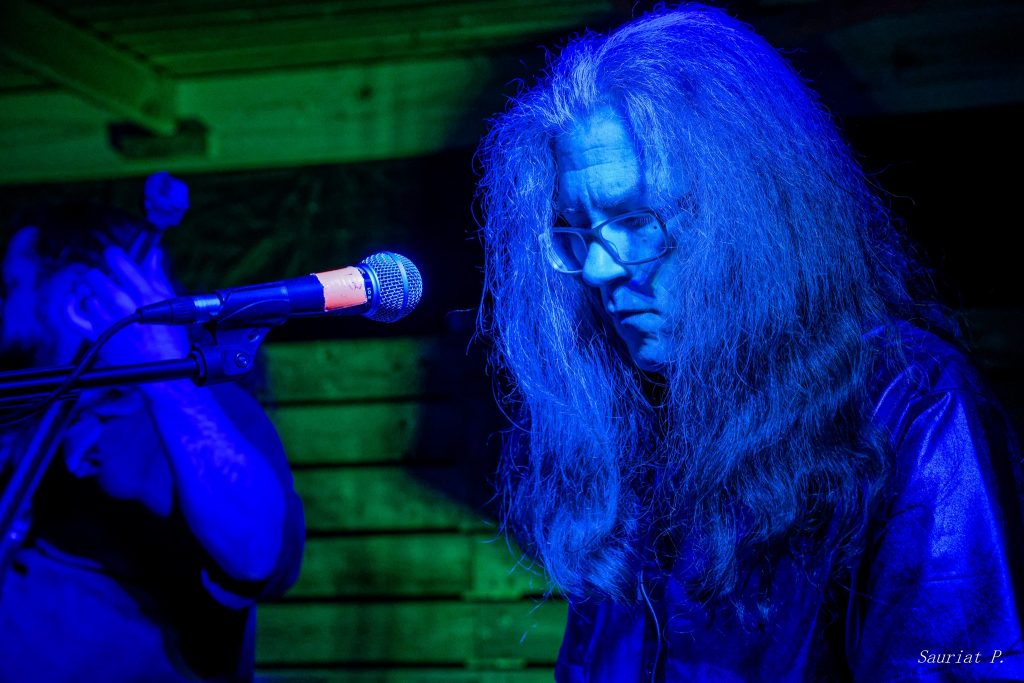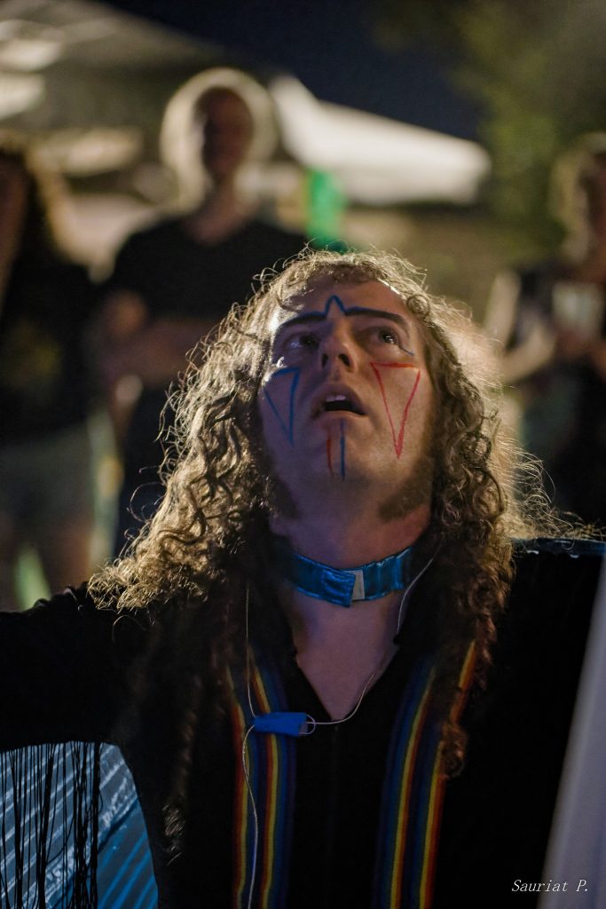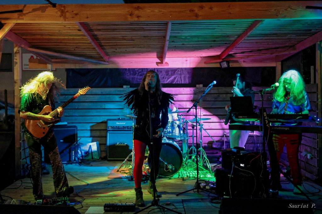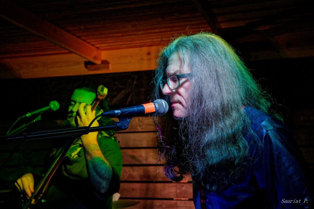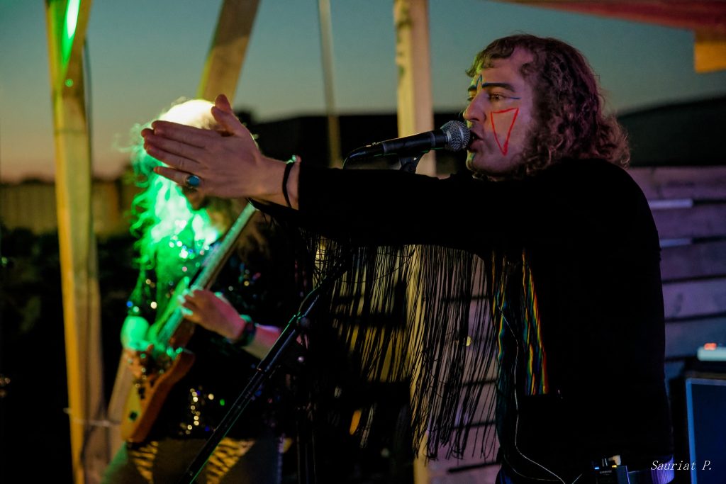 Le show de MOON LETTERS a été particulièrement dynamique, théâtral par moments avec une scénographie menée de main de maître par Michael Trew, chanteur et leader de cette formation. Costumes, accessoires, jeux de lumières, maquillage… ont contribué à maintenir un effet de surprise permanent. De plus, Michael Trew possède une voix très expressive, claire et haute qu’il maitrise parfaitement. Elle flotte au dessus de la musique et elle lui permet de parfaitement distiller les émotions et l’esprit contenus dans les différents titres, notamment sur scène. Dave Webb, quant à lui, est un prodige à la guitare et également un élément clé de MOON LETTERS. Son jeu, parfois fougueux et rock, est toujours en phase avec l’esprit progressif porté par le groupe.