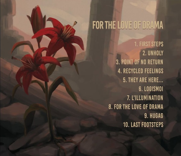 Tracklist : 1/ First Steps (1:07) 2/ Unholy (7:27) 3/ Point of no Return (5:44) 4/ Reclycled Feelings (5:05) 5/ They are Here (00:52) 6/ Logismoi (8:04) 7/ L’Illumination (7:17) 8/ For The Love Of Drama (11:25) 9/ Hugag (5:54) 10/ Last Footsteps (2:54)