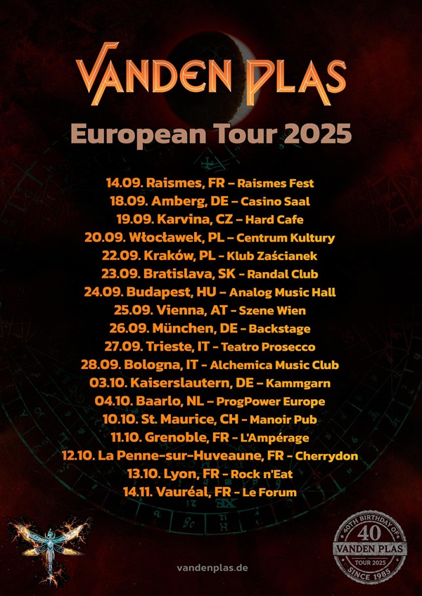 Le groupe de Métal Progressif VANDEN PLAS est en tournée en Europe en septembre/octobre/novembre 2025 avec cinq concerts programmés en France.
