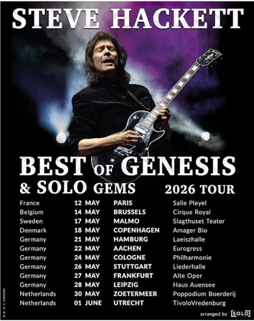 Steve Hackett vient d’annoncer les dates de sa prochaine tournée européenne « Best Of Genesis & Solo Gems » qui se déroulera en mai et juin 2026. Douze concerts sont programmés, dont un à Paris Salle Pleyel le 12 mai 2026.