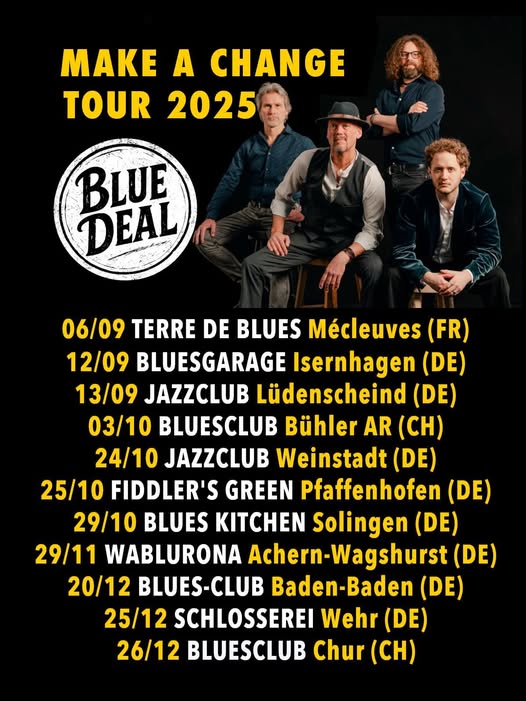 Avec « Make a Change« , son nouvel album à paraître le 10 octobre 2025 via le label Dixiefrog, BLUE DEAL – le porte-drapeau emblématique du blues rock allemand – fait un retour en force.