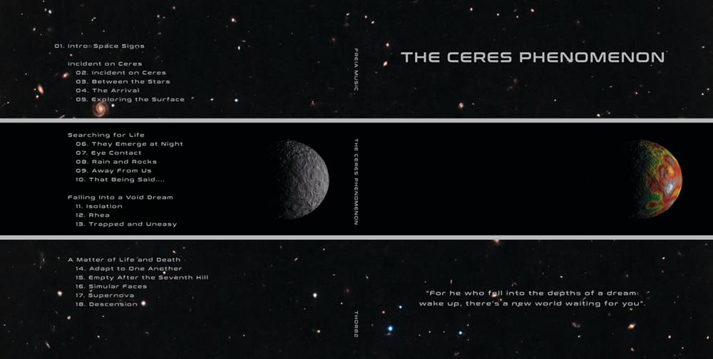 Ruud Stoker a commenté : « Nous avons travaillé sans relâche pendant trois ans pour donner vie à ce projet. The Ceres Phenomenon est notre cadeau à tous les amateurs de science-fiction qui aiment se plonger dans des histoires qui repoussent les limites de nos connaissances et de notre imagination. Ce projet s’est concrétisé en trois étapes : tout d’abord nous avons écrit l’histoire complète, puis nous avons créé l’atmosphère musicale de chaque morceau, et enfin les musiciens ont enrichi le tout d’arrangements symphoniques riches et soignés. Nous sommes très fiers de vous présenter notre premier CD et nous espérons que vous l’apprécierez autant que nous avons pris plaisir à le créer. »