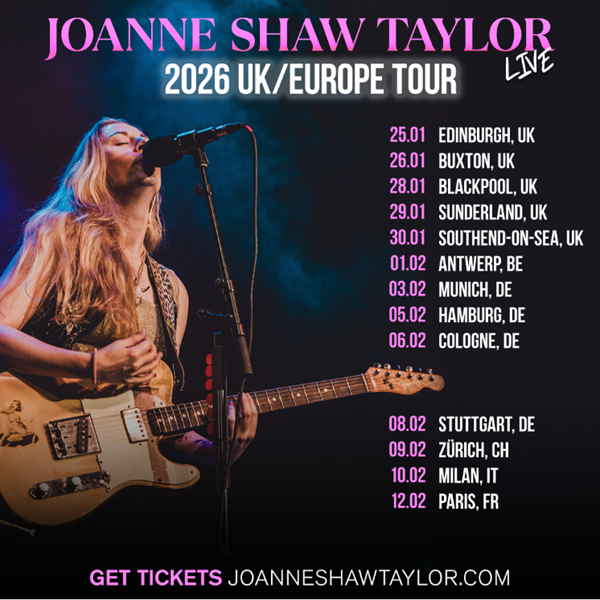 La guitariste et chanteuse britannique de blues et de rock Joanne Shaw Taylor sera en tournée en Europe début 2026. Un concert est programmé en France à Paris L’Alhambra le 12 février.