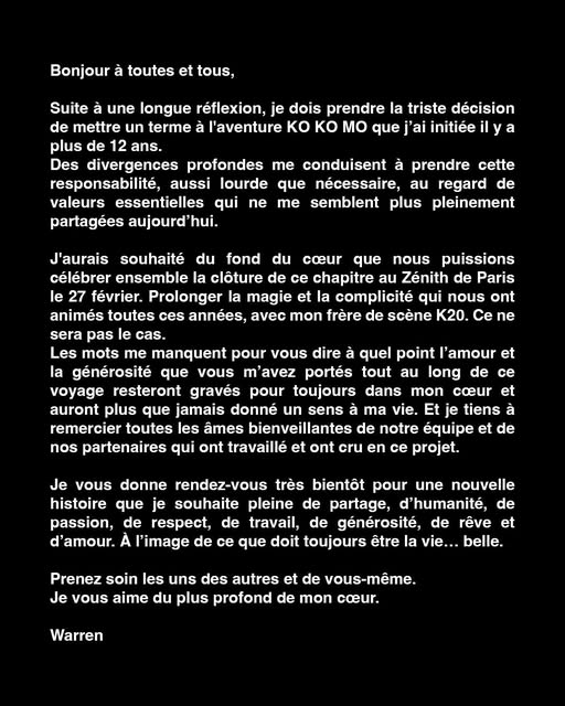 Un communiqué laconique, publié ce jour par Warren Mutton, annonce la fin de l’aventure KO KO MO…
