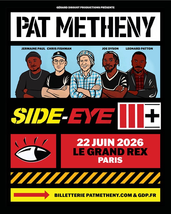 Le guitariste américain de jazz fusion Pat Metheny – vingt fois lauréat d’un Grammy Award – sera de retour en France le 22 juin 2026 à Paris Le Grand Rex, dans le cadre de la promotion de son nouvel album Side Eye III+ qui sortira le 27 février 2026.