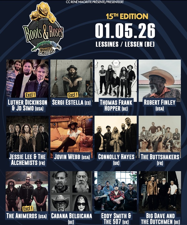 La quinzième édition du ROOTS & ROSES FESTIVAL se déroulera le 1er mai 2026 à Lessines (Belgique).