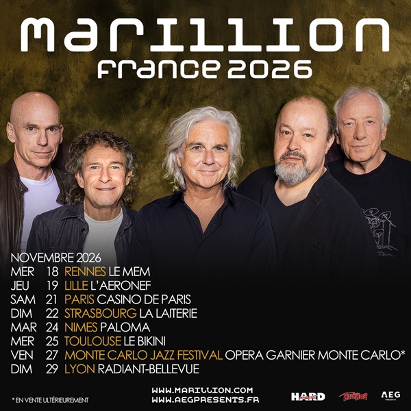 MARILLION, l’un des groupes emblématiques du rock néo progressif britannique, annonce une tournée française de huit concerts qui se déroulera en novembre 2026.
