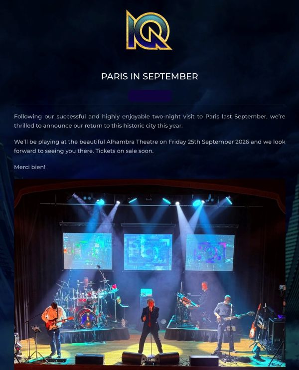 Après deux concerts du « Dominion Tour » fin 2025 à Paris, Le groupe de rock progressif britannique IQ sera de retour à Paris – Alhambra Théâtre, le 25 septembre 2026.